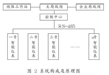 一些企業(yè)將數(shù)臺(tái)流量?jī)x表與計(jì)算機(jī)之間以RS-485總線為信號(hào)傳輸媒質(zhì),以MODBUS協(xié)議作為系統(tǒng)通信協(xié)議,系統(tǒng)構(gòu)成及原理圖如圖2所示,實(shí)現(xiàn)了系統(tǒng)內(nèi)部各單元的可靠通訊及系統(tǒng)與其他使用MODBUS協(xié)議的智能儀表間的進(jìn)行互連與組網(wǎng),建立了整個(gè)自動(dòng)化管理網(wǎng)絡(luò)。