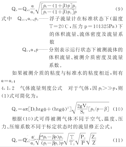 理論.上液體與氣體流量測量的密度修正公式分別如下: