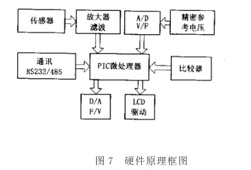 智能信號處理器的硬件原理如圖7所示,其核心部件為美國某公司的PIC單片機,其內(nèi)部集成了ROM、RAM、定時器、數(shù)據(jù)采集器、看門狗電路、上電復(fù)位電路,可節(jié)省大量外圍電路。