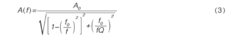 渦街流量計設(shè)計采用由具有1/f²衰減(-40dB/dec)特性的低頻濾波器和二階高通濾波器(40dB/dec)組成的帶通濾波器來對原始信號的幅頻特性進行處理。該濾波器的幅頻特性為: