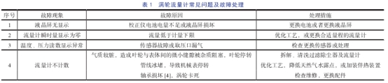 渦輪流計(jì)常見(jiàn)問(wèn)題及故障處理(見(jiàn)表1)